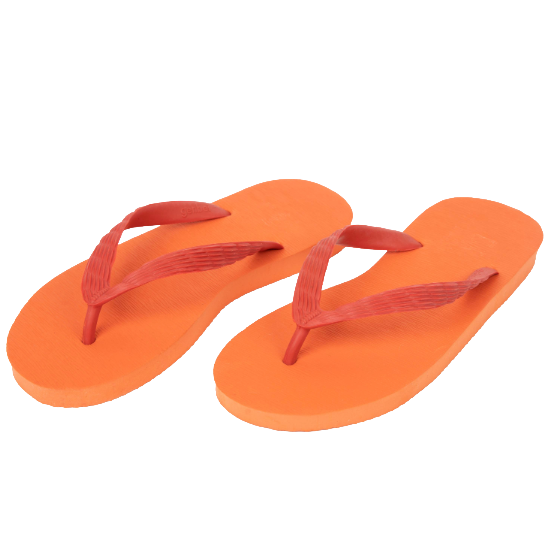 げんべいのビーチサンダルはソールと鼻緒に天然ゴムを使用しているため、スレや締め付けで足が痛くなりにくいのが特徴です。また、ソールは体重で凹み、履けば履くほど自分の足に馴染んでいき、鼻緒は自身の甲の高さに合わせて伸びていくことで自分の足に馴染んだビーチサンダルに育っていきます。